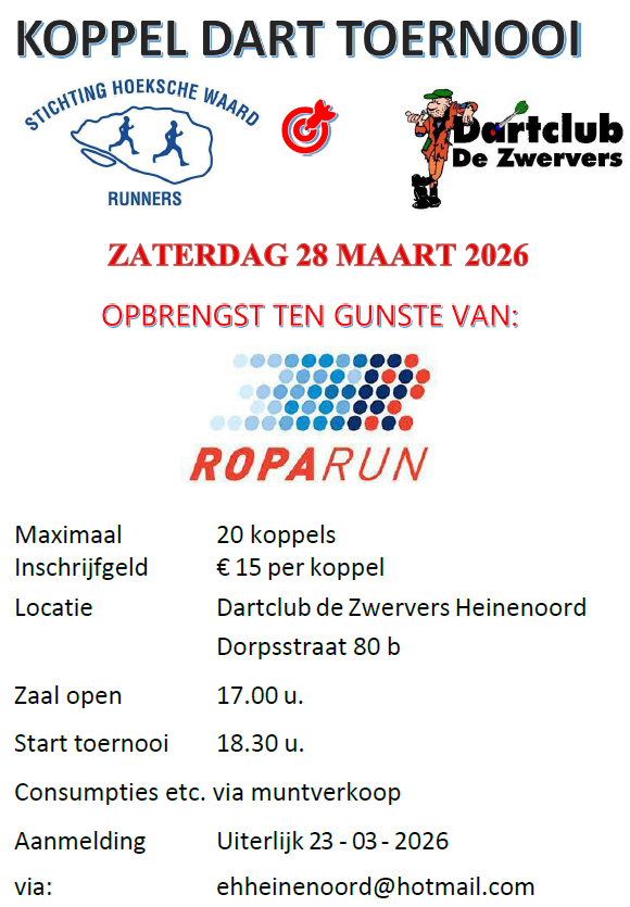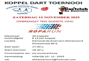 Op zaterdag 15 november organiseerden de HW Runners samen met dartvereniging De Zwervers in Heinenoord een gezellig darttoernooi.