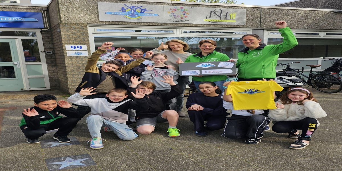 Woensdag 15 april werden we uitgenodigd door IKC Albert Plesmanschool voor de bekendmaking van de opbrengst van de sponsorloop. De directrice en de leerlingenraad overhandigde ons een cheque met maar liefst 3.245,75 euro!